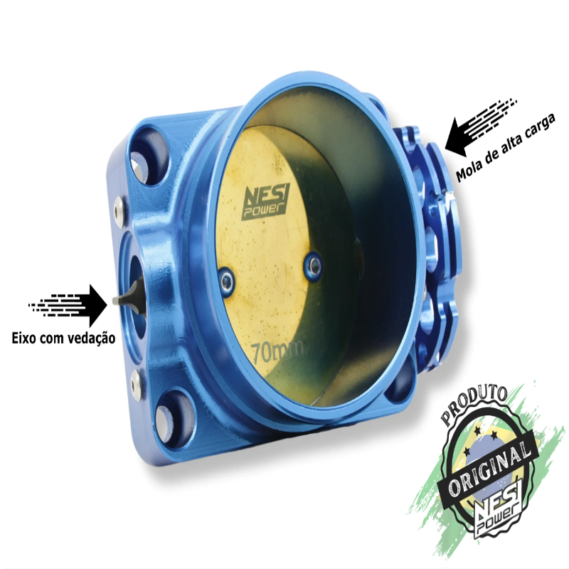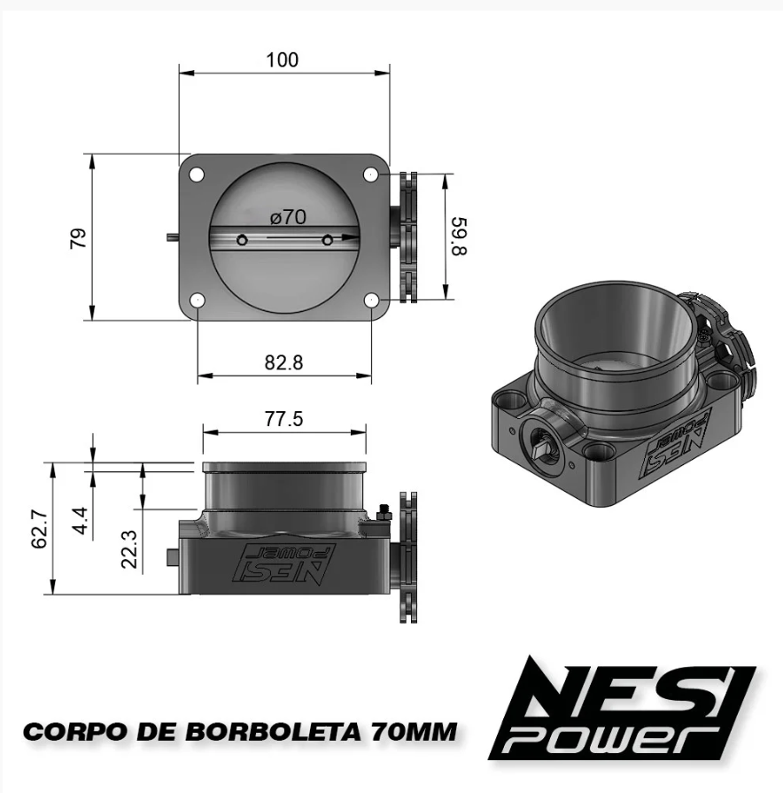 Os corpos de borboleta (TBI) NesiPower são componentes responsáveis pela admissão de ar do motor a combustão, fabricados em alumínio 6351 billet com usinagem em Centro de usinagem CNC. Seu acionamento é via cabo, com uma mola de retorno que possui pressão adequada, eliminando a necessidade de instalação de uma mola externa. Este componente foi desenvolvido especialmente para atender às demandas dos melhores pilotos e preparadores de arrancada brasileira.