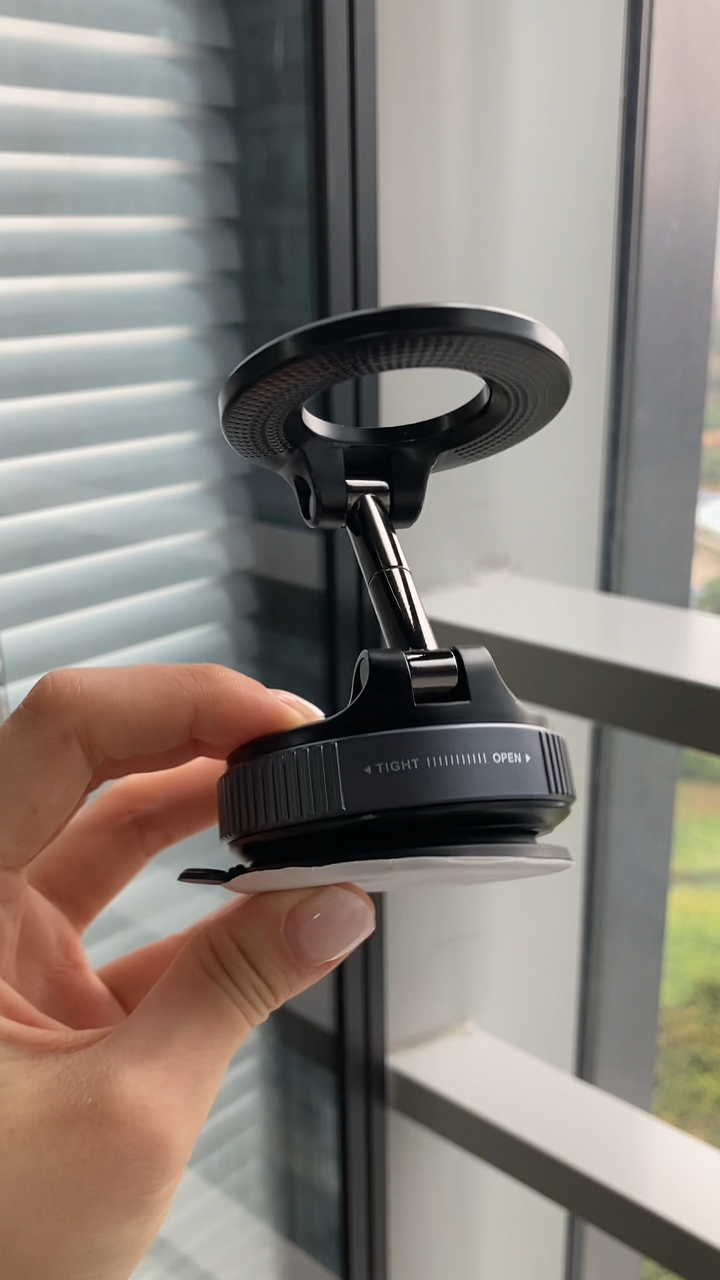 A ventosa ultraaderente fixa em qualquer superfície do carro, e o ímã potente mantém o aparelho firme até nas curvas mais fechadas.